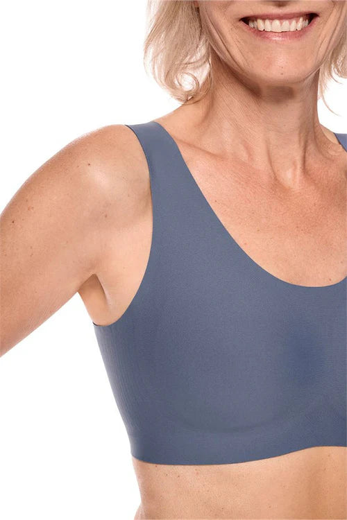 - Moulded cups & integrated pockets to hold a breast form or shaper