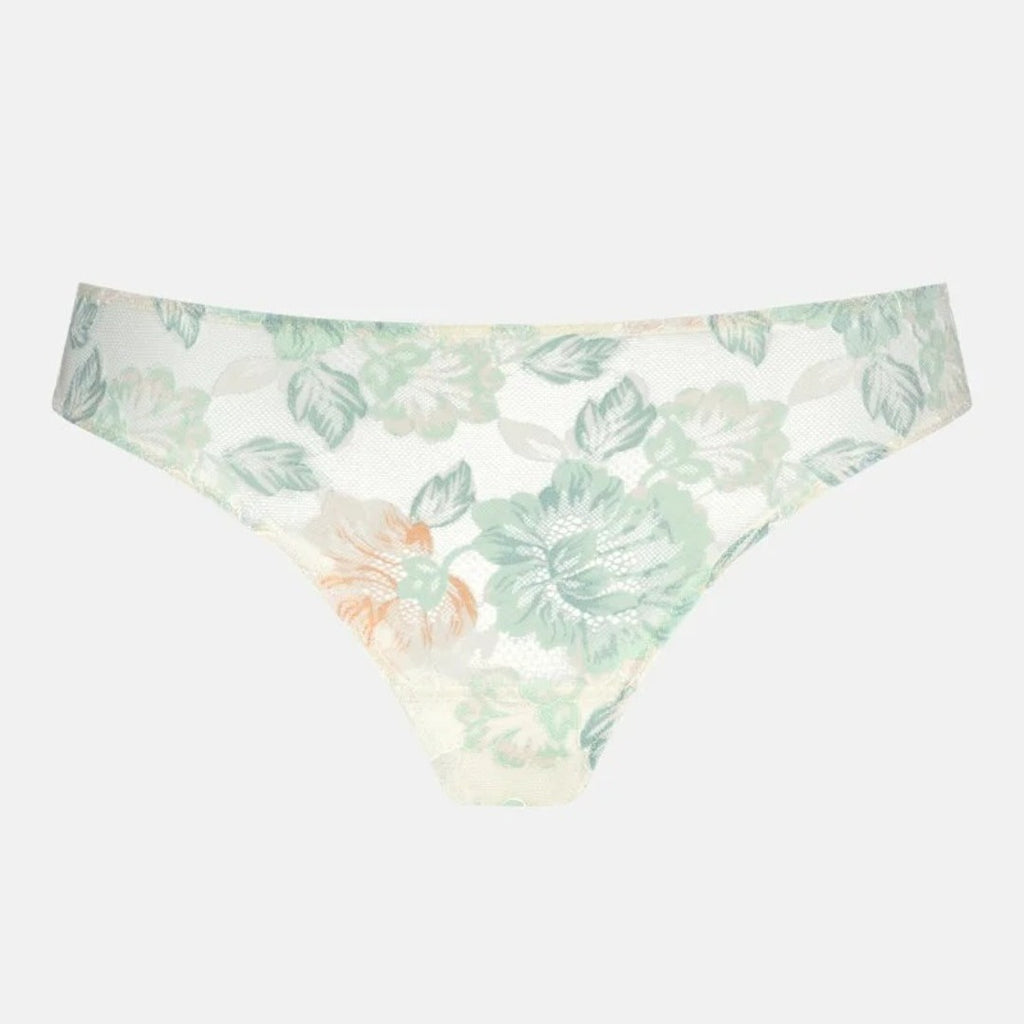 The mey Serie Amazing Thong in oatmilk blends delicate floral watercolor prints with transparent fabrics, creating a modern and elegant look. Featuring floral lace trims, this thong pairs beautifully with its matching bra to form a seductive and stylish lingerie set. Certified to Oeko-Tex® Standard 100, it ensures your comfort with textiles tested free from harmful substances—making it a conscious and alluring choice for your collection.
