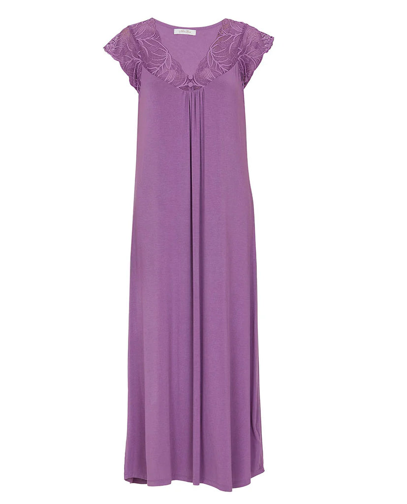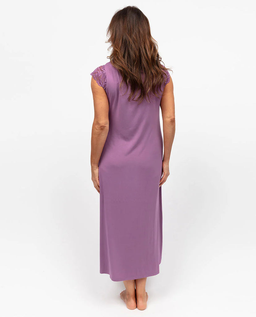 Letting the world drift away and finding comfort in the simplest of moments, that’s what evenings are made for. The Rhea Long Nightdress is your new sanctuary of comfort for when you’re yearning for slow evenings and relaxed mornings. Crafted from a beautifully soft blend of 95% modal and 5% elastane, the nightdress is both soft on the skin and flows with you to give you an escape when your day has been caught in the fast lane - cool, smooth, and impossibly light. A mauve modal trim caresses the edges of the nightdress, while a delicate leaf gallon lace adorns the front neck yoke. Cap sleeves frame the V-shaped neckline, creating a flattering silhouette. Soft gathers bloom beneath the lace, falling into a generous hem that promises comfort for the moments you want to savour. Whether you're melting into a quiet evening or greeting the first light of morning, this nightdress is a celebration of those moments that belong entirely to you.