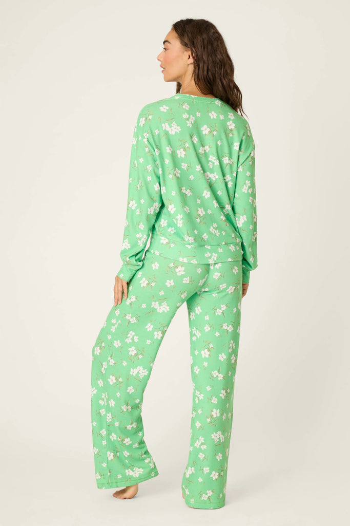Slip into comfort with the P.J. Salvage C'est La Vie PJ Set, where style meets relaxation. This lightweight ensemble features a soft peach jersey long sleeve top adorned with delicate white blossoms against a verdant green backdrop, creating an effortlessly charming aesthetic. The breathable fabric keeps you cool through the night, while the relaxed silhouette pairs seamlessly with the matching lounge pant for a coordinated, put-together look. Perfect for lazy mornings, cozy evenings, or those days when comfort is non-negotiable—because life's sweetest moments deserve the softest pajamas.