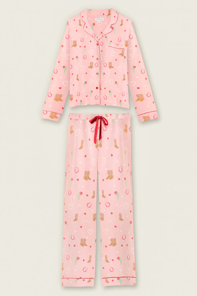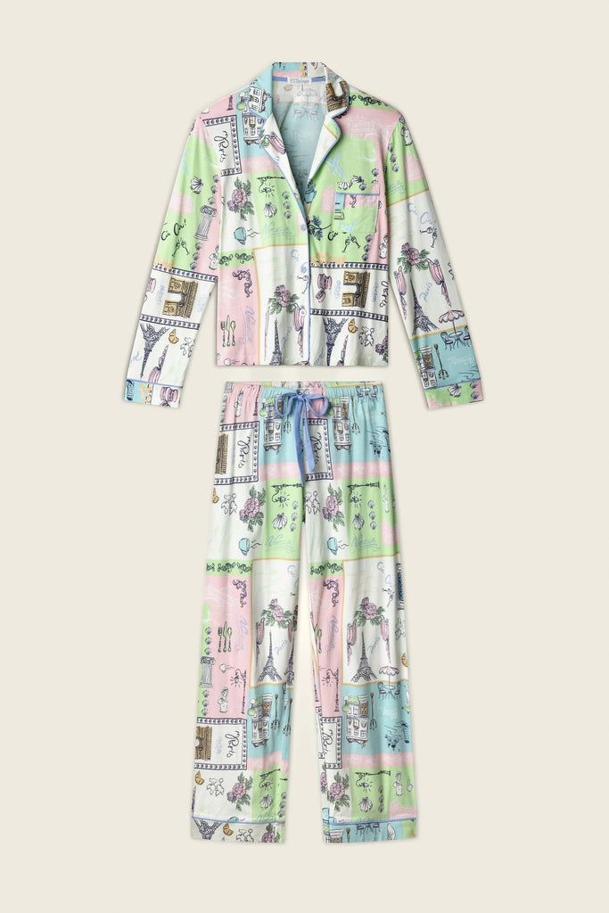 Escape into whimsy with the P.J. Salvage Whimsy PJ Set—where comfort meets imagination. Crafted from soft cotton-modal blend, this relaxed pajama set features a button-down top and drawstring pants adorned with enchanting prints that spark joy. Whether you're dreaming of Parisian café moments or cozy Western sunsets, each whimsical design tells its own charming story. Perfect for lounging in style, this set wraps you in playful comfort that makes bedtime feel like a delightful adventure.